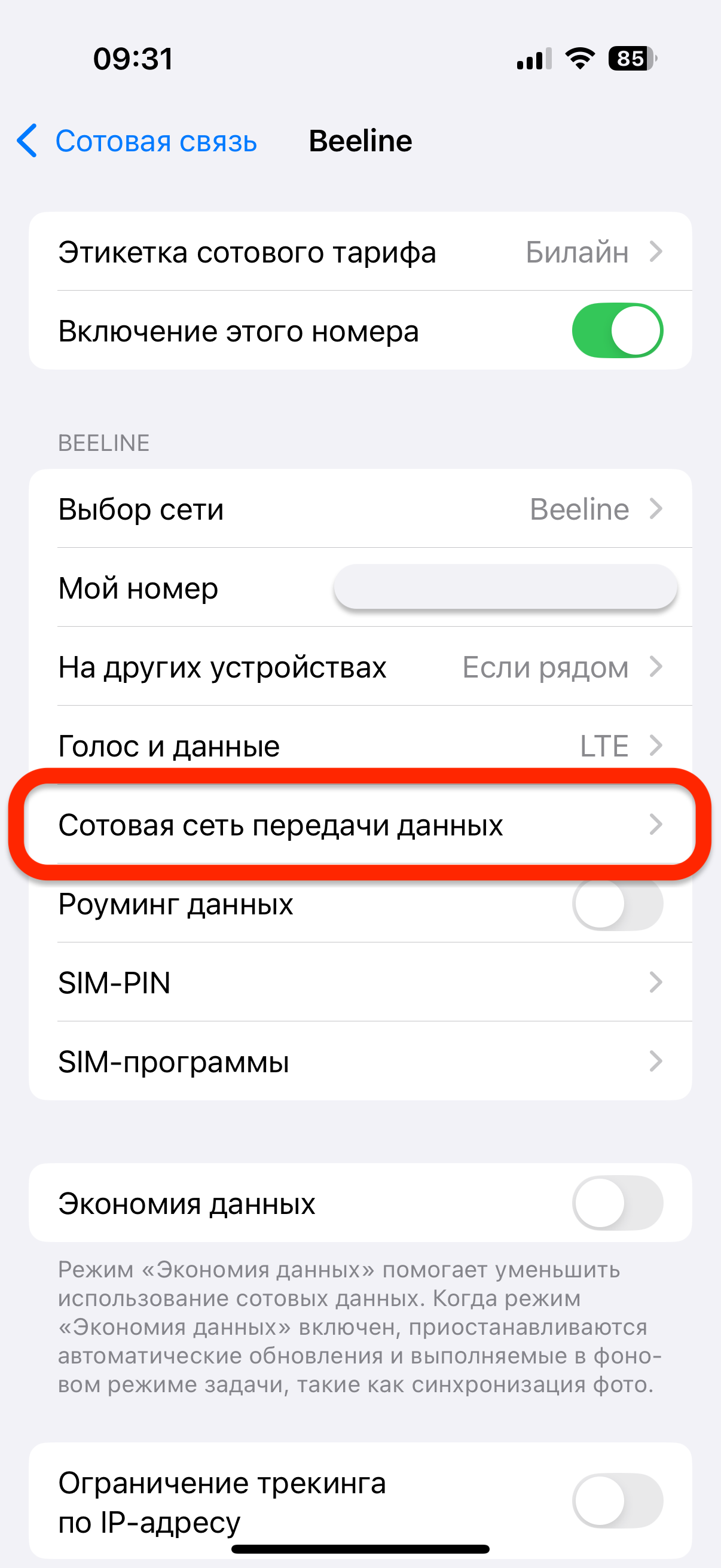 В настройках айфона можно вручную указать конфигурацию сети — этого будет достаточно, чтобы вернуть раздачу интернета на свое привычное место в iOS. Для этого откройте «Настройки» и перейдите в раздел «Сотовая связь», затем выберите сим-карту и перейдите в подробные настройки.